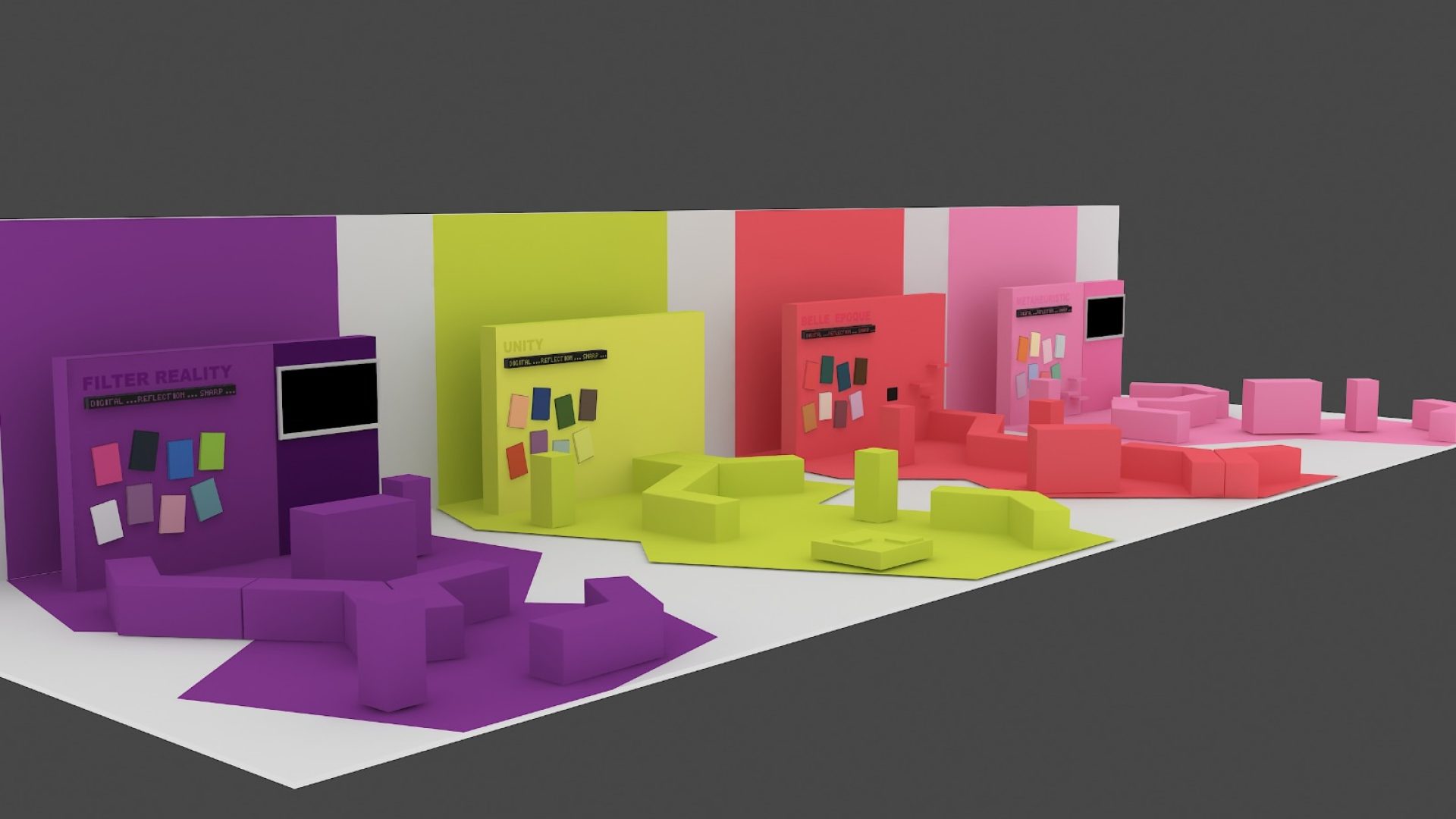 Stand içindeki sadelik ve düzen, marka değerinin premium ve sofistike olduğunu ima eder.