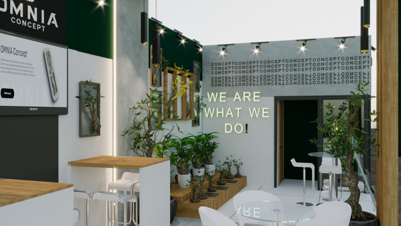 “OMNIA Concept” yazısının modern, net ve sade bir fontla sunulması, markanın iddialı ama ulaşılabilir olduğunu gösterir.