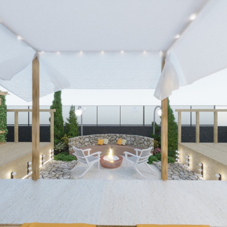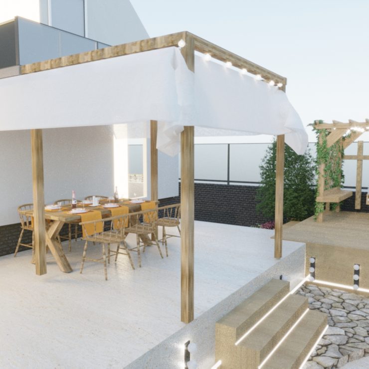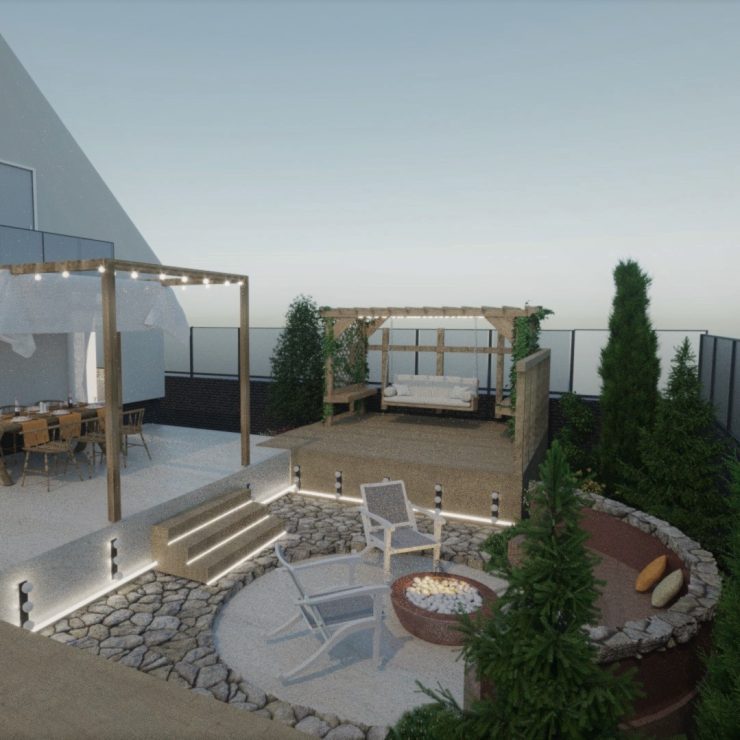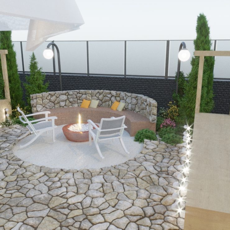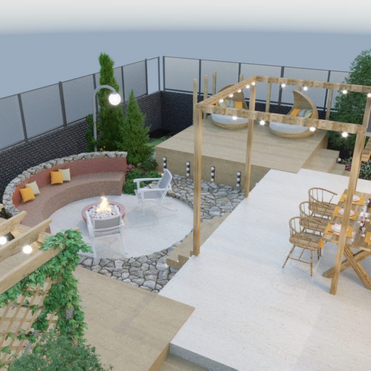 Online tasarım desteği sunduğumuz bu projemizde temel problem mevcut peyzaj alanındaki kot farkları ve zamandı.Çözüm önerisi olarak kotları eşitlemek yerine mevcut kot dengesini koruyarak farklı yaşam ve hobi alanları tasarlamayı amaçladık.Kalabalık ve misafir kültürü ön planda olan ailemiz için tasarım sunumu mutluluk vericiydi revize ihtiyacımız olmadan mevcut tasarım görseller üzerinden uygulama planını ileterek süreci sonlandırdık.